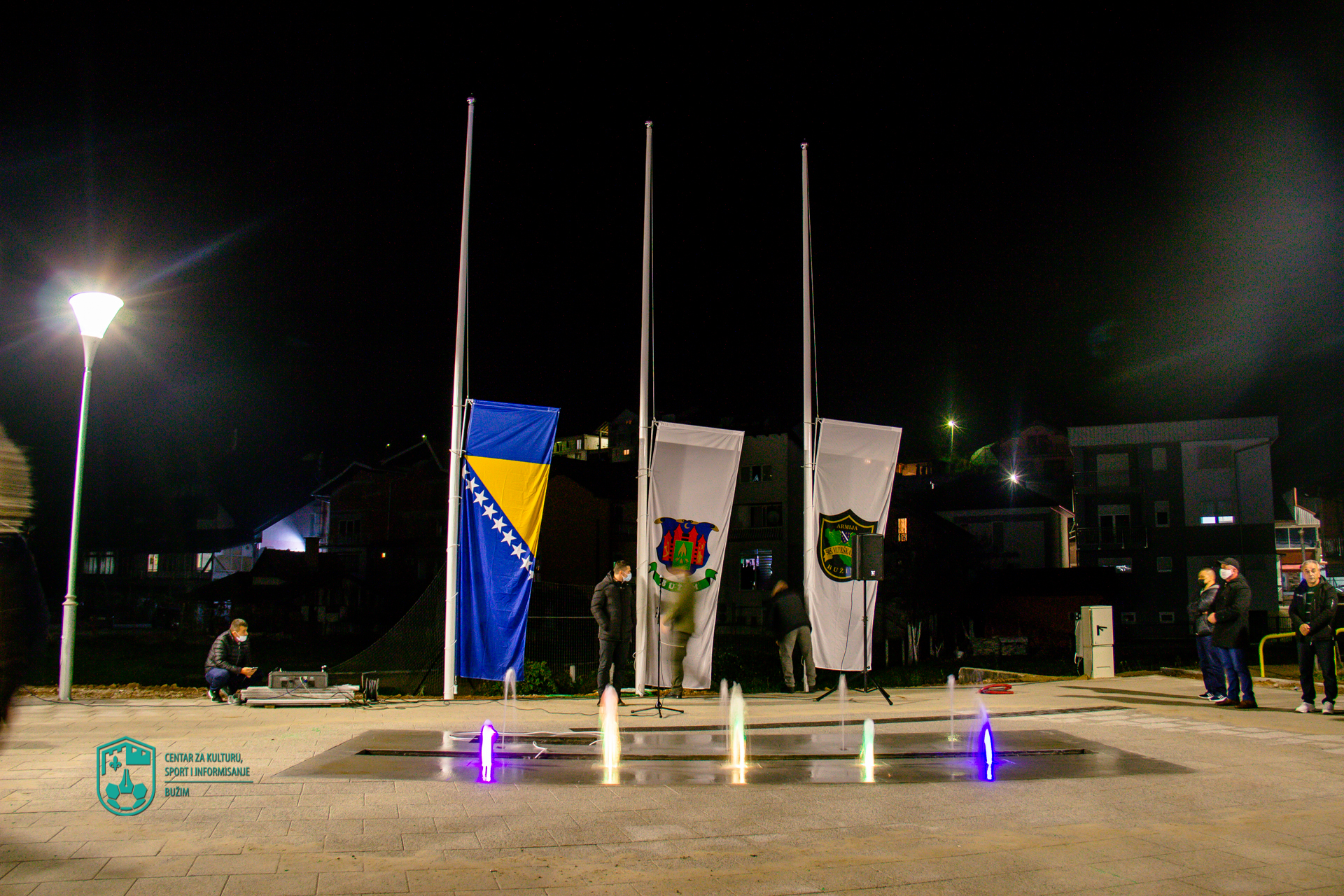 Takođe sinoć su i simbolično podignute zastave, i to “Ljiljanka” na samom kružnom toku, a podigli su je predstavnici udruženja dobitnika najviših prizanja i odlikovanja općine Bužim. Takođe uporedo s njom na mjestu i dijelu trga koji predstavlja spomen obilježje prvom predsjedniku RBiH Aliji Izetbegoviću podignute su i zastava Bosne i Hercegovine, zastava općine Bužim i zastava 505. viteške brigade.