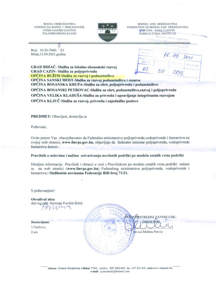 Vijesti Bužim OBAVIJEST ZA POLJOPRIVREDNE PROIZVOĐAČE Agan Skenderović, 5 godina ago 1 min read 1478 Vijesti Bužim ASFALTIRANA ULICA ZMAJA OD BOSNE Vijesti Bužim POTPISANI UGOVORI ZA IZGRADNJU OSAM PUTNIH PRAVACA Related posts Ostalo, Vijesti Bužim OPĆINA BUŽIM DODIJELILA REKORDAN BROJ STIPENDIJA Agan Skenderović, 12 godina ago 2 min read Vijesti Bužim U BUŽIMU OBILJEŽEN DAN POLICIJE USK Agan Skenderović, 6 godina ago 1 min read Vijesti Bužim ODRŽAN ŠESTI MOTO MARATON “DANI SLOBODE USK” Agan Skenderović, 4 godine ago 1 min read Vijesti Bužim ODRŽANA CENTRALNA MEVLUDSKA SVEČANOST Agan Skenderović, 12 godina ago 1 min read Vijesti Bužim Novčana podrška porodicama sa četvero i više malodobne djece Agan Skenderović, 8 godina ago 1 min read Vijesti Bužim REAKCIJA NA MEDIJSKU BLOKADU JAVNOG SERVISA RTVUSK Agan Skenderović, 6 godina ago 2 min read