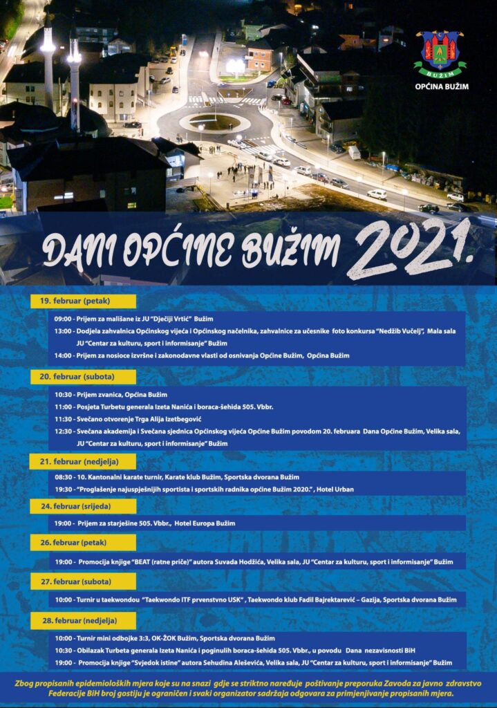 Vijesti Bužim PROGRAM OBILJEŽAVANJA DANA OPĆINE BUŽIM Agan Skenderović, 5 godina ago 1 min read 1825 Vijesti Bužim NAJMLAĐI STANOVNICI ČESTITALI ROĐENDAN OPĆINE BUŽIM Budžet - Javne nabavke DOKUMENT OKVIRNOG BUDŽETA 2022-2024.GODINA OPĆINE BUŽIM Related posts Ostalo, Vijesti Bužim URUČENI MANDATI OPĆINSKIM VIJEĆNICIMA OPĆINE BUŽIM Agan Skenderović, 9 godina ago 1 min read Vijesti Bužim POTPISANI UGOVORI SA SEDAMDESET I SEDAM STIPENDISTA OPĆINE BUŽIM Agan Skenderović, 3 godine ago 2 min read Ostalo, Vijesti Bužim PREDSTAVLJANJE VIŠE KNJIGA AUTORA HUSEINA MURATOVIĆA Agan Skenderović, 12 godina ago 1 min read Vijesti Bužim POTPISANO DESET UGOVORA ZA SANACIJU I IZGRADNJU PUTNE MREŽE Agan Skenderović, 4 godine ago 2 min read Ostalo, Vijesti Bužim ZAPOČEO NAJMASOVNIJI MALONOGOMETNI TURNIR U BIH Agan Skenderović, 12 godina ago 2 min read Ostalo, Vijesti Bužim Načelnik Bunić na konferenciji “Pružanje općinskih usluga“ Agan Skenderović, 13 godina ago 1 min read