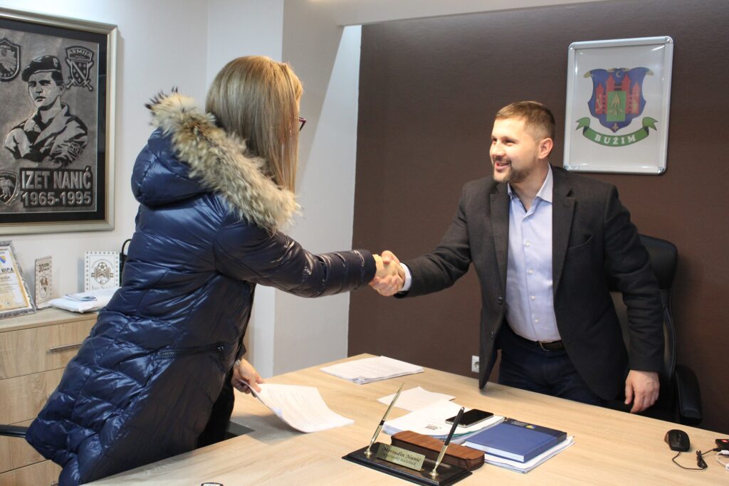 U kabinetu Općinskog načelnika Mersudina Nanića danas su potpisana četiri ugovora za izgradnju i rekonstrukciju tri putna pravca u tri mjesne zajednice na području općine Bužim sa izvođačem radova. Ugovori su potpsani za nekategorisane putne pravce Mulalići- Stari grad druga i treća faza, Abazovići-Kaukovići i put Babinac u MZ Čava ukupne vrijednosti 162.928,00 KM. Završetkom radova općina Bužim će dobiti 1474 metra novog asfaltnog puta. Izvođač radova na svim putnim pravcima je poduzeće “KOV-GRAD” iz Bužima.