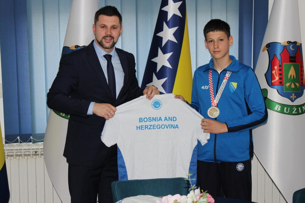 Na Europskom prvenstvu ITF Tekwondoa koje je održano protekle sedmice u Poreču – R Hrvatska i osvojene zlatne medalje i titule evropskog prvaka u svojoj kategoriji (juniori do 50 kg), mladog četrnaestogodišnjeg reprezentativca BiH Mehmeda Krupića sa članovima reprezentacije iz dva bužimska taekwondo kluba „Hamze“ i „Gazije“ primili su Općinski načelnik i predsjedavajući Općinskog vijeća, te uputili iskrene čestitke na postignutim rezultatima.