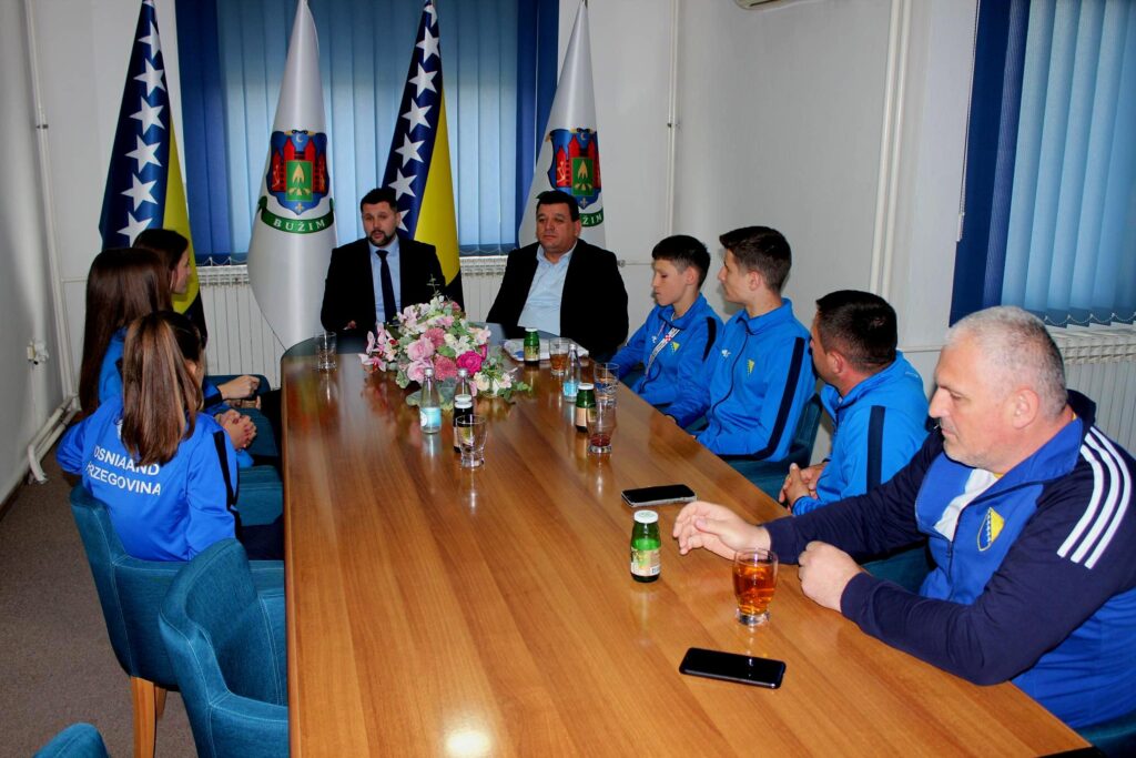 Načelnik općine Bužim Mersudin Nanić i predsjedavajući OV Bužim Suvad Šahinović primili su danas europskog prvaka Mehmeda Krupića i članove državne reprezentacije BiH sa trenerom Amirom Tahićem.