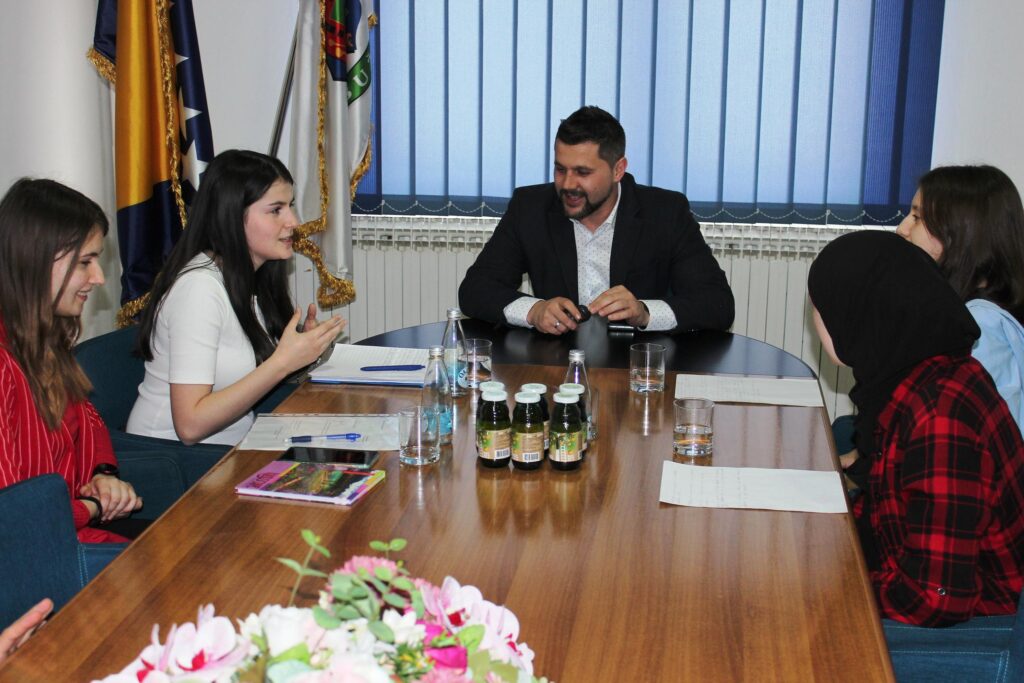 Posjeta je upriličena u okviru programa „Projekt građanin“ u kojem učenici istražuju aktuelne teme, razvijaju svoja rješenja koja nude nadležnim institucijama i kreiraju akcione planove za implementaciju tih rješenja. Učenici Osnovne škole Bužim i područne škole Varoška Rijeka razgovarali su sa načelnikom i njegovim saradnicima na temu izgradnje sportske dvorane i sportskih igrališta u područnim školama. Istakli su problem nedostatka ovakvih objekata u područnim školama sa velikim brojem učenika kao što je područna škola Varoška Rijeka gdje učenici nemaju adekvatne uslove za obavljanje sportskih i drugih fizičkih aktivnosti.
