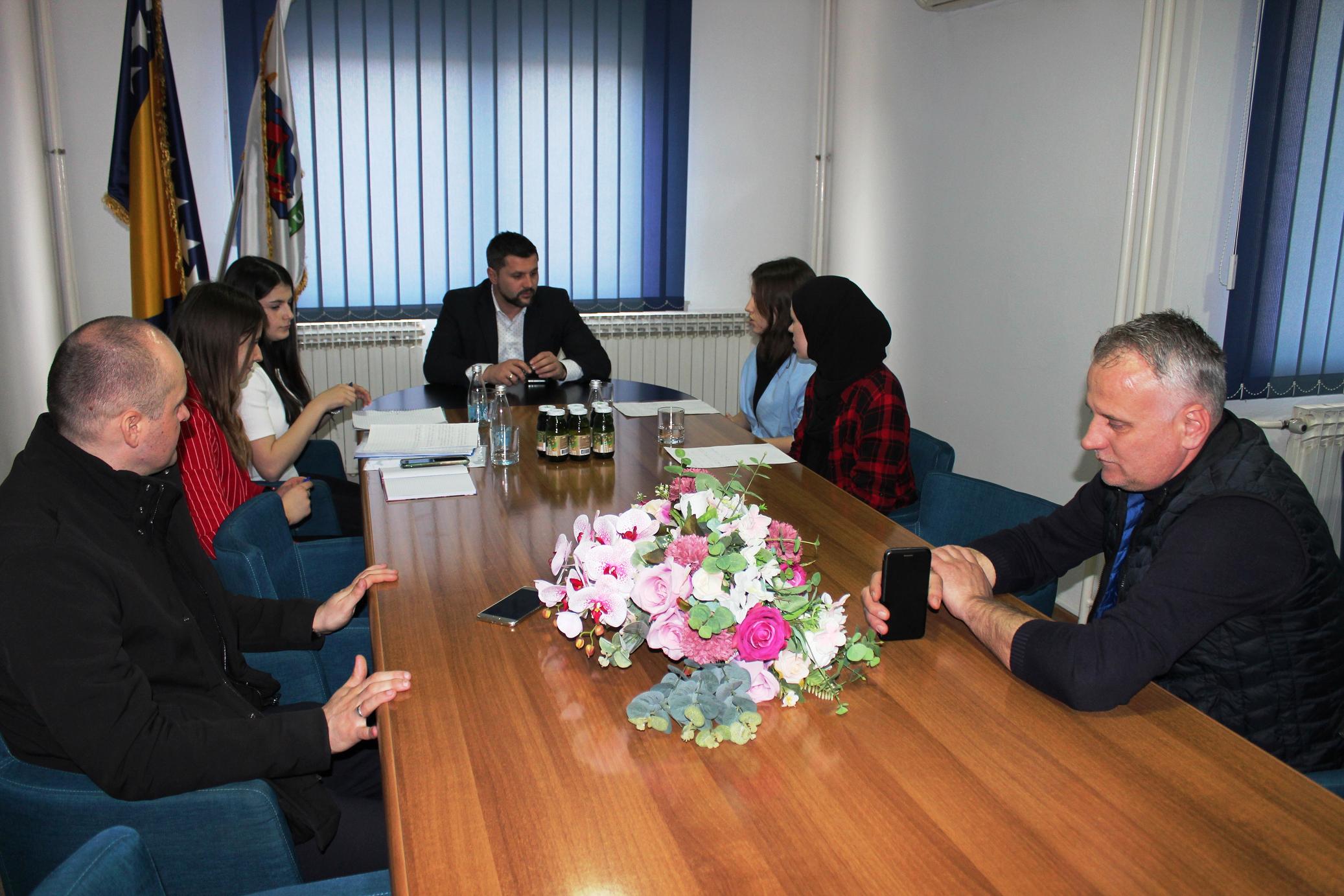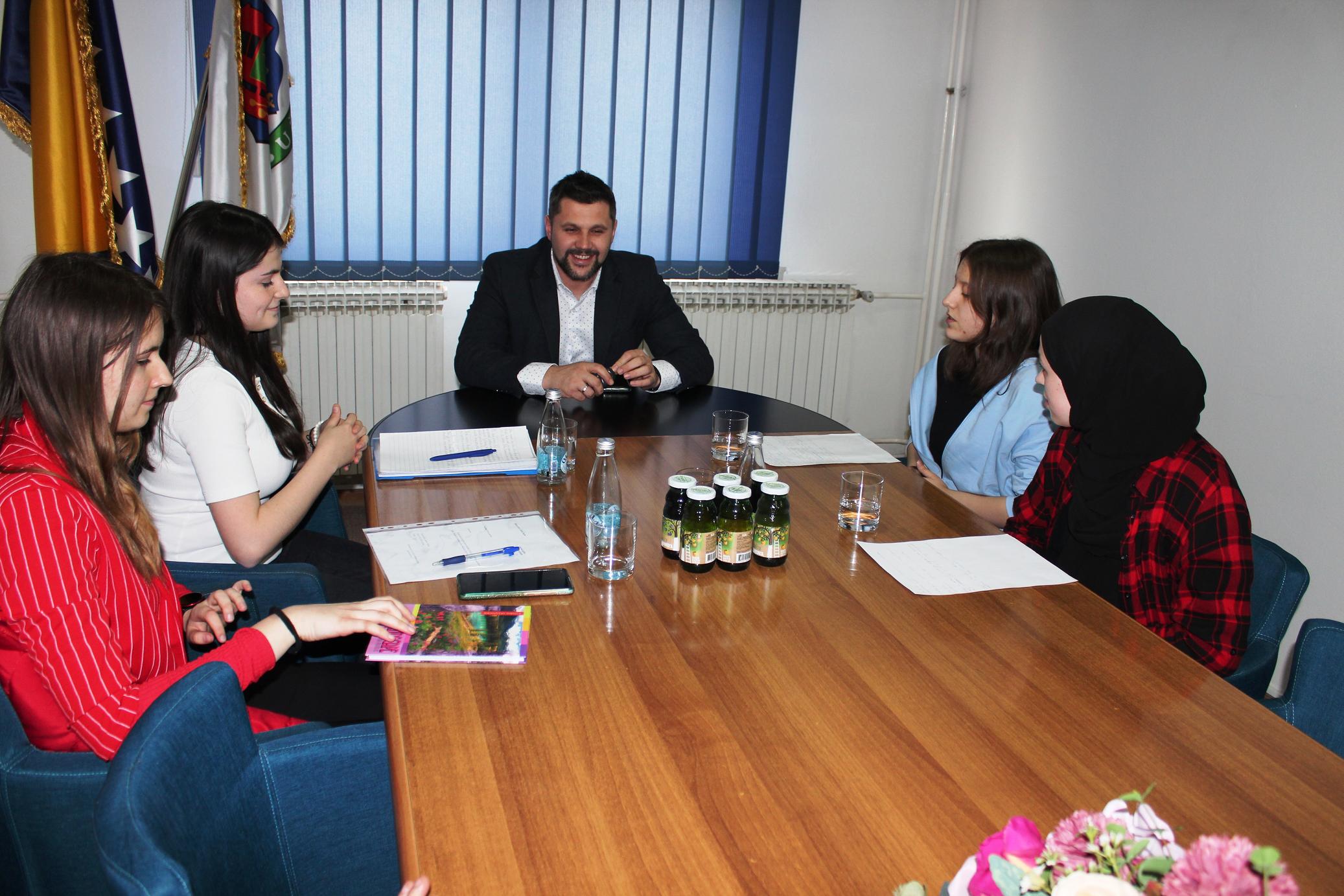 Učenici centralne Osnovne škole Bužim sa učenicima iz područne škole Varoške Rijeka, posjetili su danas Općinu Bužim i načelnika Mersudina Nanića.