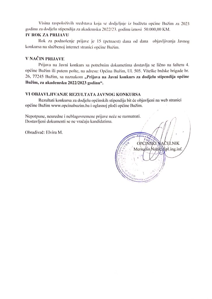 Vijesti Bužim JAVNI KONKURS ZA PREDSJEDNIKE/ZAMJENIKE BIRAČKIH ODBORA Agan Skenderović, 2 godine ago 1 min read