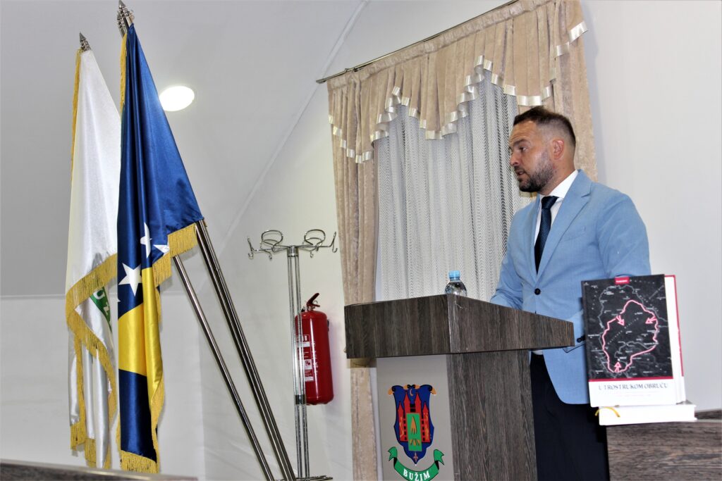 Promotor  mr.Jasmin Musić govorio je o značaju pisane riječi, te posebno naglasio kako je knjiga autora Franje Jurića puna originalnih dokumenata koji se po prvi put pojavljuju u javnosti i daju potpuno drugačiju i jasnu sliku šta se dešavalo na Okrugu Bihać u proteklom ratu.