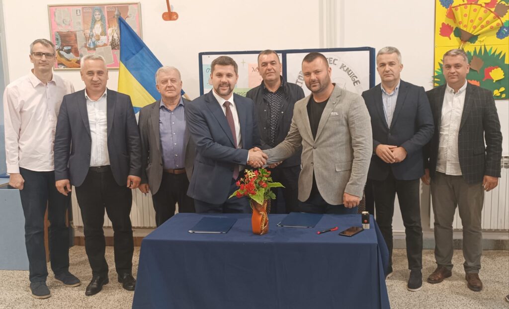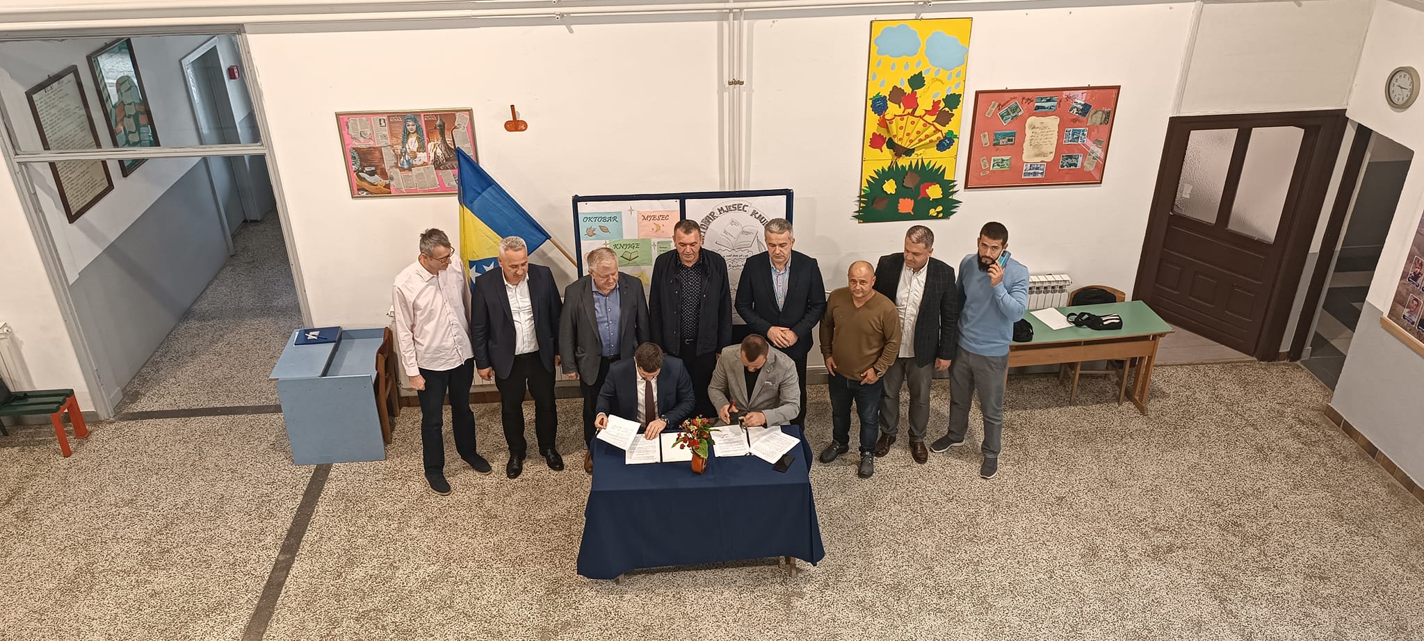 Općinski načelnik Mersudin Nanić i direktor poduzeća “Velić Kop” d.o.o Bosanska Krupa Amel Velić potpisali su danas u Čavi ugovor za izgradnju II faze fiskulturne školske sale u Čavi.