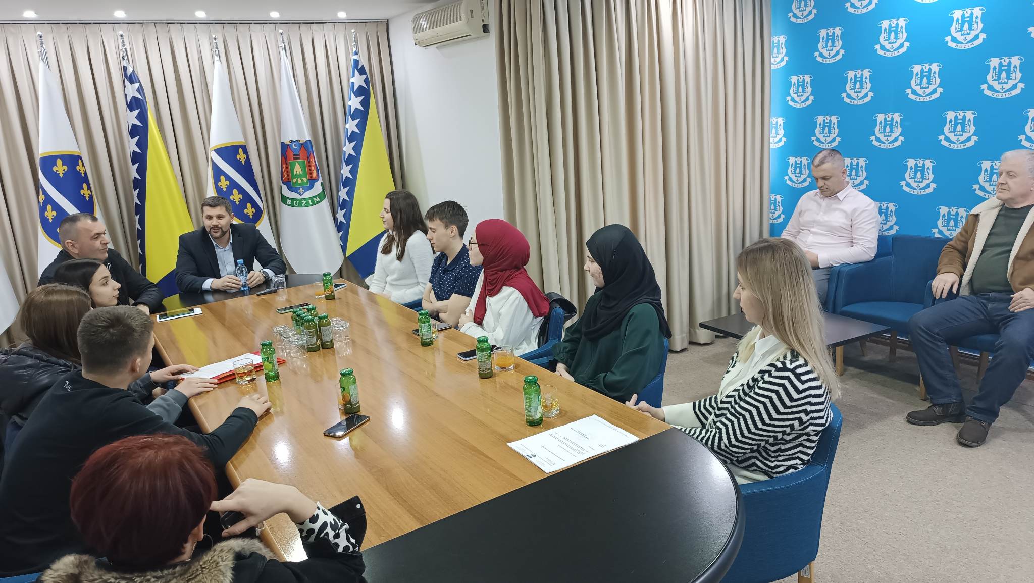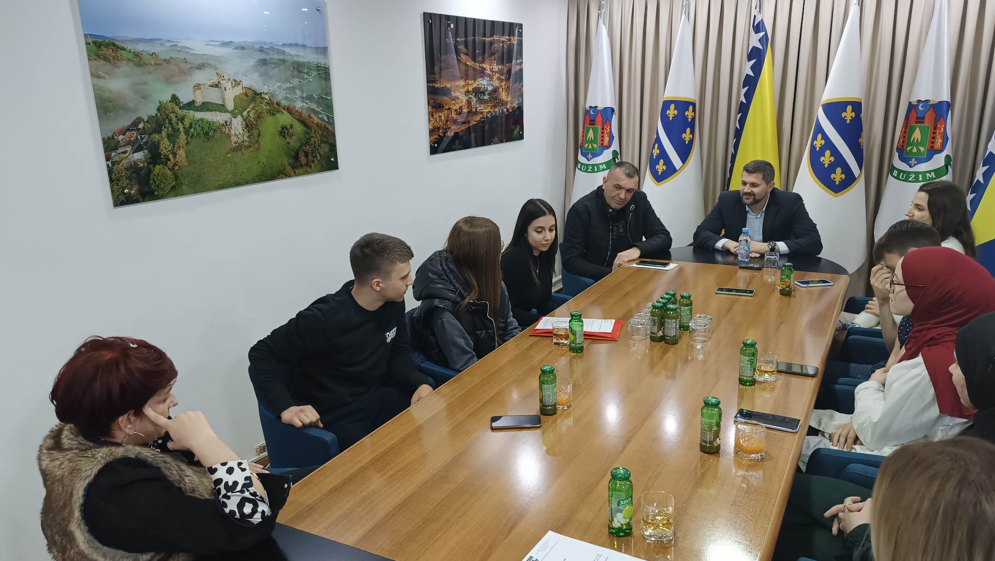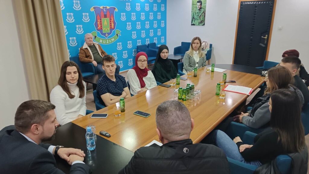 Općinski načelnik Mersudin Nanić primio je danas učenike Mješovite srednje škole „Hasan Musić-Musa“ koji u okviru projekta „,,Civitas“ iz predmeta Demokratija i ljudska prava ove godine obrađuju temu,,Femicid”. Prezentaciji inicijative učenika srednje škole prisustvovali su predsjedavajući OV Hasan Hilić i vijećnici u OV Bužim Agan Elkasović i Suvad Veladžić.