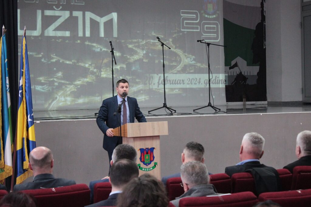 U ime Vlade F BiH prisutnima se na svečanoj akademiji obratio i ministar za izbjegla i raseljena lica Nerin Dizdar koji je pored čestitke načelniku, Upravi i građanima općine Bužim posebno naglasio kako je sretan što danas može podijeliti radost dvadeset i devetog rođendana sa herojskom općinom i njenim načelnikom koji je posebno ustrajan i predan u radu na izgradnji grada blizanaca, grada heroja i bužimskih vitezova.