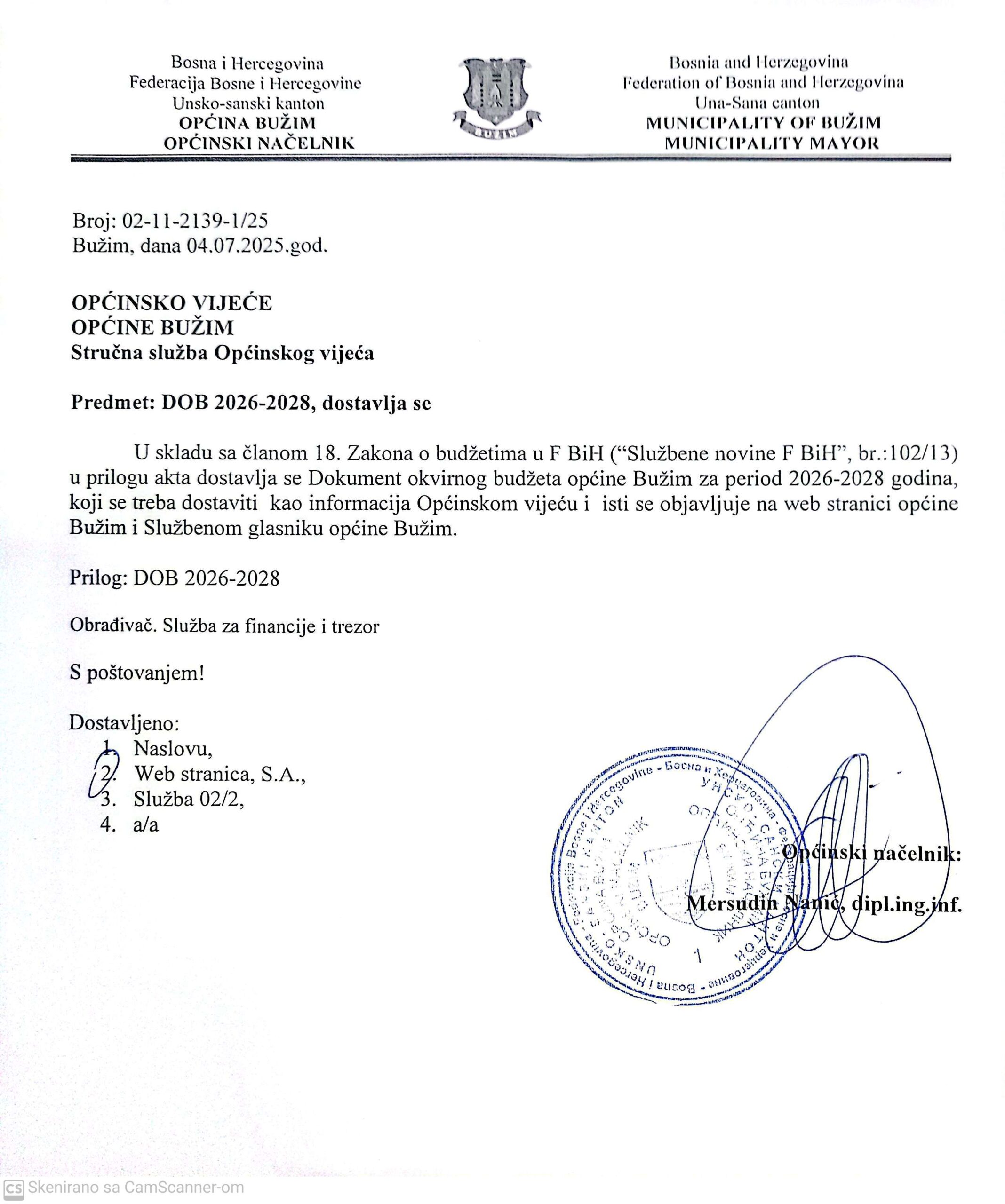 Budžet - Javne nabavke DOKUMENT OKVIRNOG BUDŽETA 2026-2028 Agan Skenderović, 10 mjeseci ago 1 min read 1016 DOKUMENT OKVIRNOG BUDŽETA- općina BUŽIM 2026-2028 Vijesti Bužim ISPRAĆENI ČLANOVI BICIKLISTIČKOG KLUBA BUŽIM Vijesti Bužim ASFALTIRAN PUT KIURIĆA BRDO-ŠAHINOVIĆA DOLINA Related posts Budžet - Javne nabavke, Ostalo, Vijesti Bužim BUDŽET OPĆINE ZA 2020.GODINU Agan Skenderović, 6 godina ago 1 min read Budžet - Javne nabavke, Ostalo, Vijesti Bužim OKVIRNI BUDŽET OPĆINE BUŽIM ZA PERIOD 2019-2021 Agan Skenderović, 8 godina ago 1 min read Budžet - Javne nabavke, Ostalo, Vijesti Bužim POZIV NA JAVNU RASPRAVU O NACRTU BUDŽETA OPĆINE BUŽIM ZA 2019. GODINU Agan Skenderović, 7 godina ago 1 min read Budžet - Javne nabavke, Vijesti Bužim BUDŽET ZA GRAĐANE 2023 Agan Skenderović, 3 godine ago 1 min read Budžet - Javne nabavke BUDŽET ZA GRAĐANE Agan Skenderović, 1 godina ago 1 min read Budžet - Javne nabavke, Vijesti Bužim JAVNE NABAVKE 2025 Agan Skenderović, 1 godina ago 3 min read