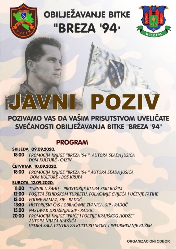 Centralno obilježavanje ove bitke upriličeno je na spomen obilježju na lokaciji Sip-Križ, mjestu gdje se desila bitka “Breza `94”. Obilježavanje je počelo u srijedu a nastavljeno u četvrtak promocijama knjige “Breza `94” autora Seada Jusića u Cazinu i Bosanskoj Krupi 09.09.2020. i 10.09.2020. godine ,...